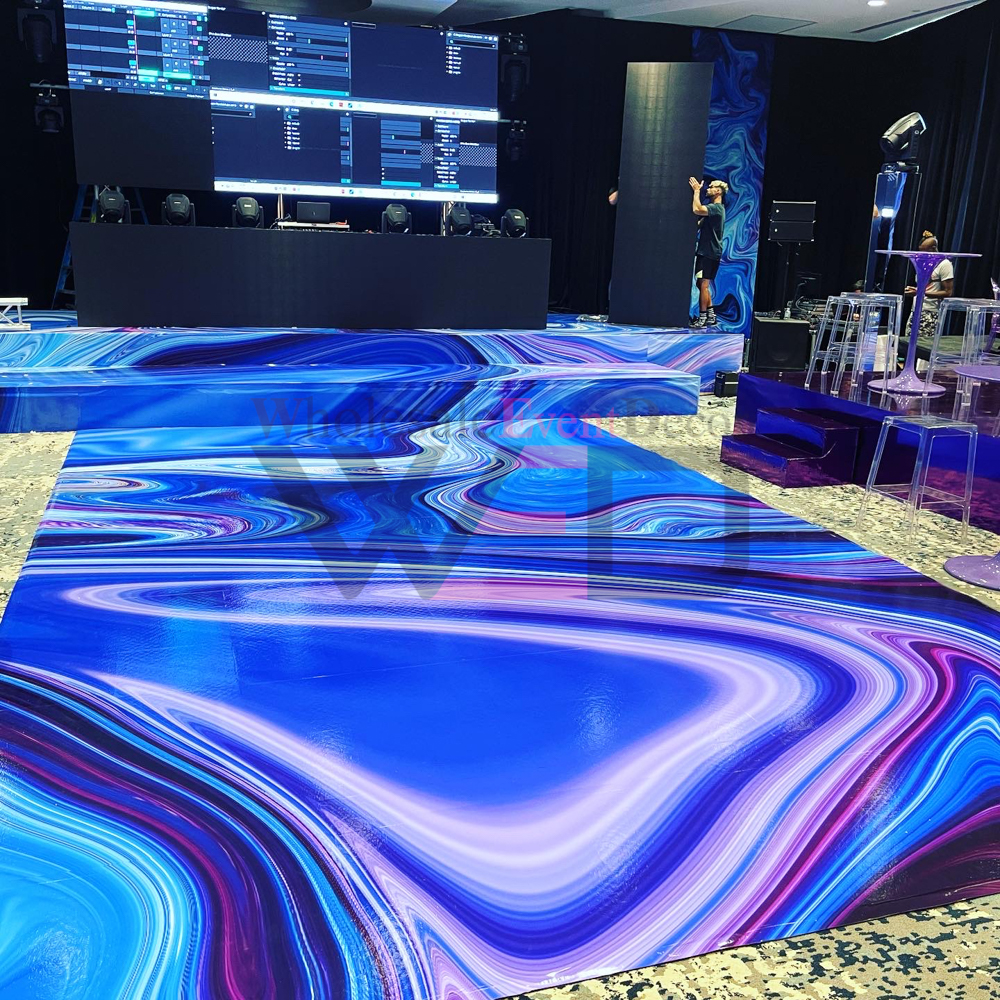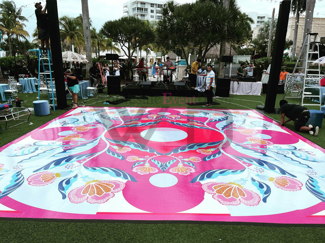 Example: A 20ft x 20ft dance floor wrap is printed 21ft x 21ft. This is to overlap over the edge of a dance floor and then cut for a clean edge. If wrap is being applied directly on the floor and you wish not to have the extra 12″ bleed, Please email and notify us within 24 hours after placing your order.